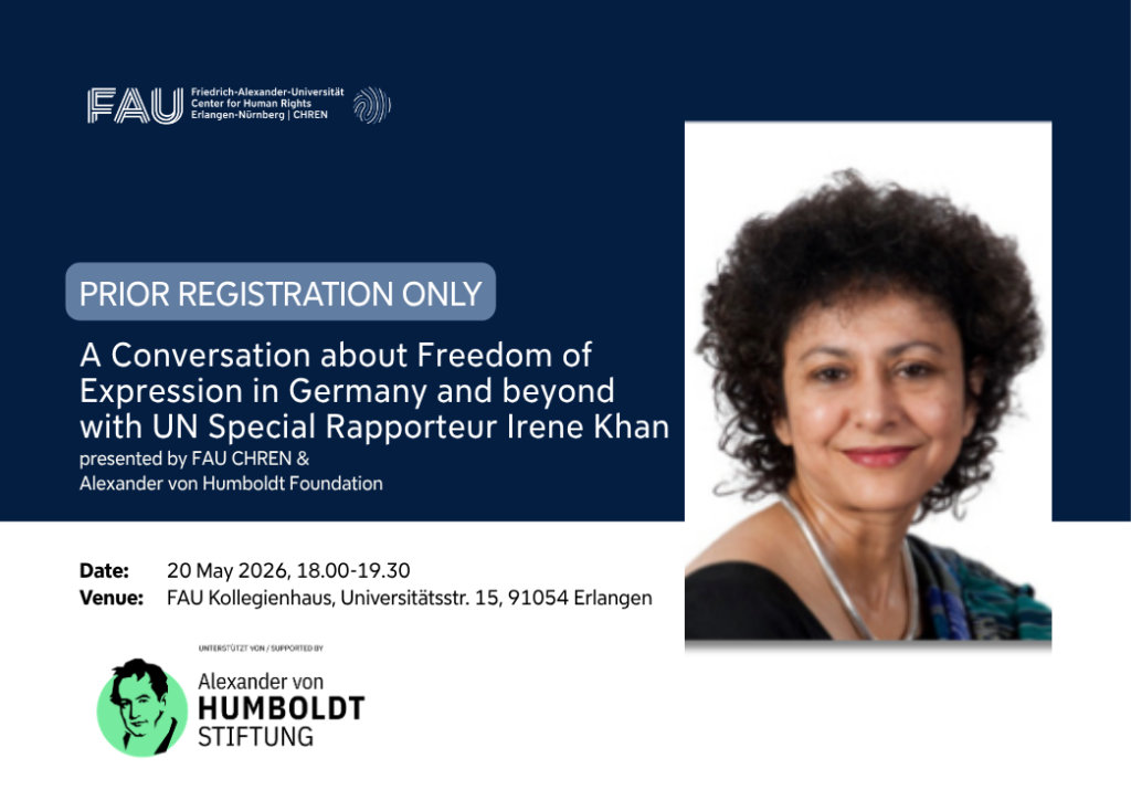 The FAU Research Center for Human Rights Erlangen-Nürnberg (FAU CHREN), with the kind support of the Alexander von Humboldt Foundation, is planning an event on 20 May 20 2026, featuring…