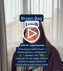 Since the winter semester 2025/26, FAU CHREN has once again been hosting the FAU CHREN Brown Bag Lunches. Organized by Dr. Eline Waerp and Dr. Caroline Lichuma, the series is aimed at early-career researchers who wish to present and discuss their research projects, theses, or initial ideas.