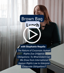 The first session of the renewed series was led by Dr. Eline Waerp, who presented her research on “The Digitalization of EU Air Border Controls and the Normalization of Banal Securitization.” Other recent speakers include Dr. Julia Stefanello Pires with a talk on “Corporate Accountability in Critical Raw Materials Supply Chains: Perspectives from Latin America,” and Stephanie Regalia, who presented a chapter of her doctoral dissertation entitled “The Nature of Corporate Human Rights Due Diligence Obligations: To What Extent Can We Draw from International Human Rights Law to Interpret Corporate Obligations?”